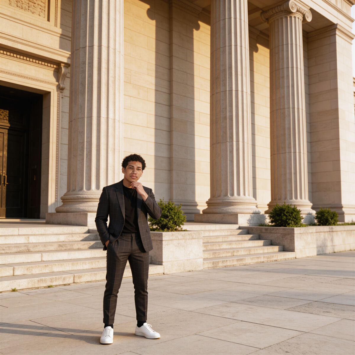 Natural mid-moment feel, avoid stiff poses