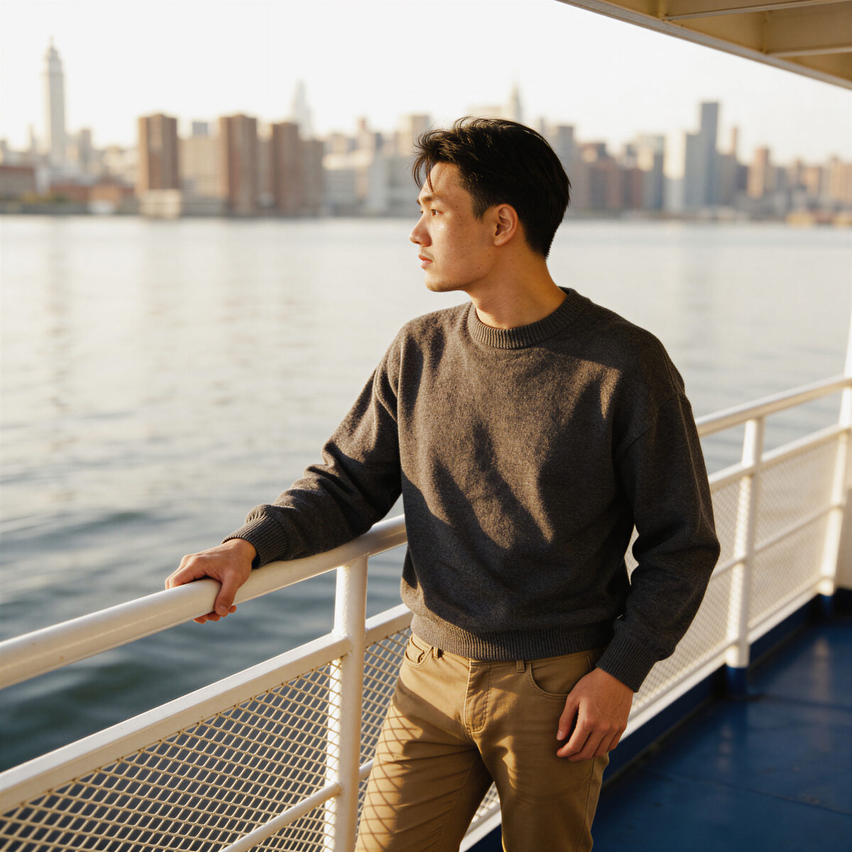 - Relaxed pose appears confident