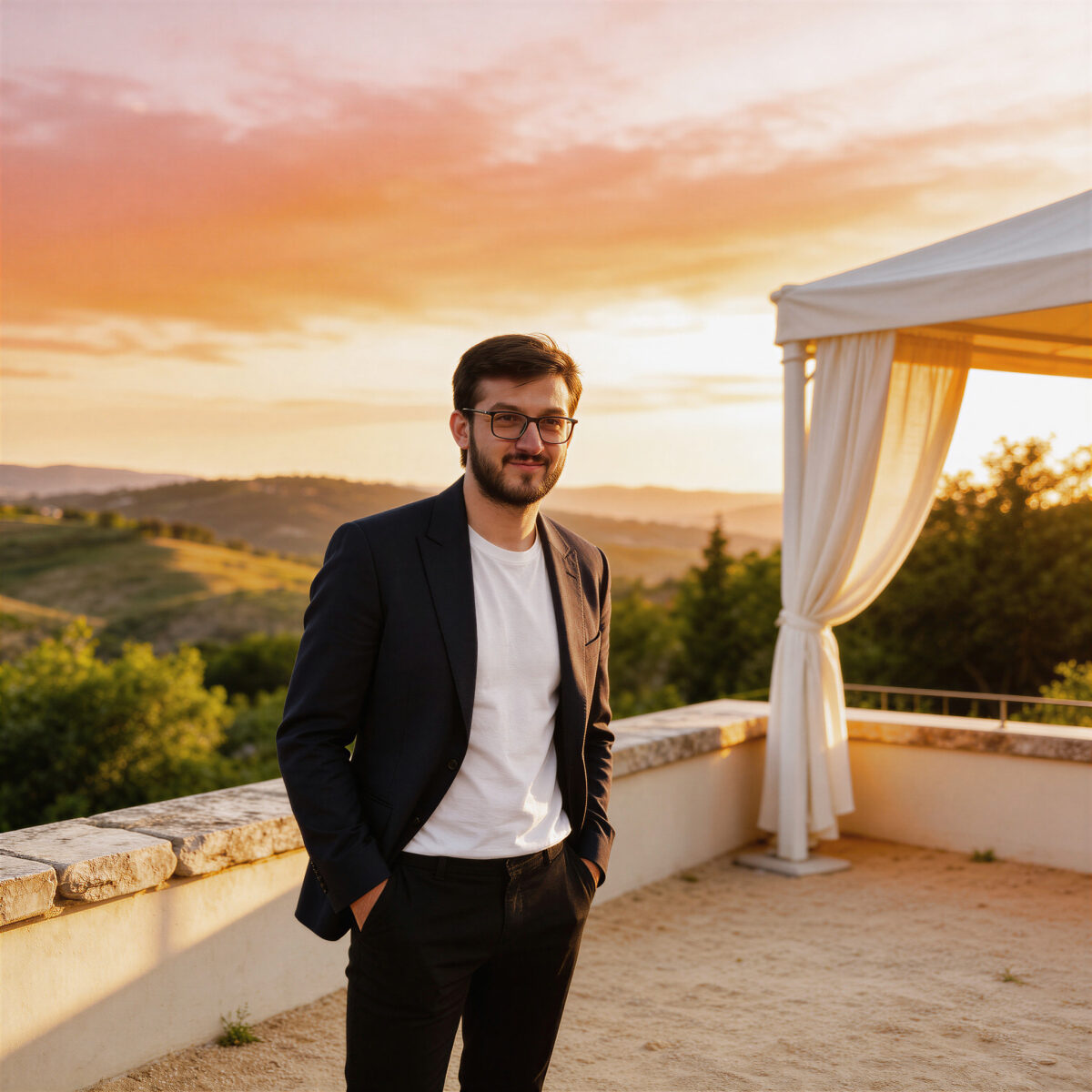 - Warm golden hour lighting is flattering
